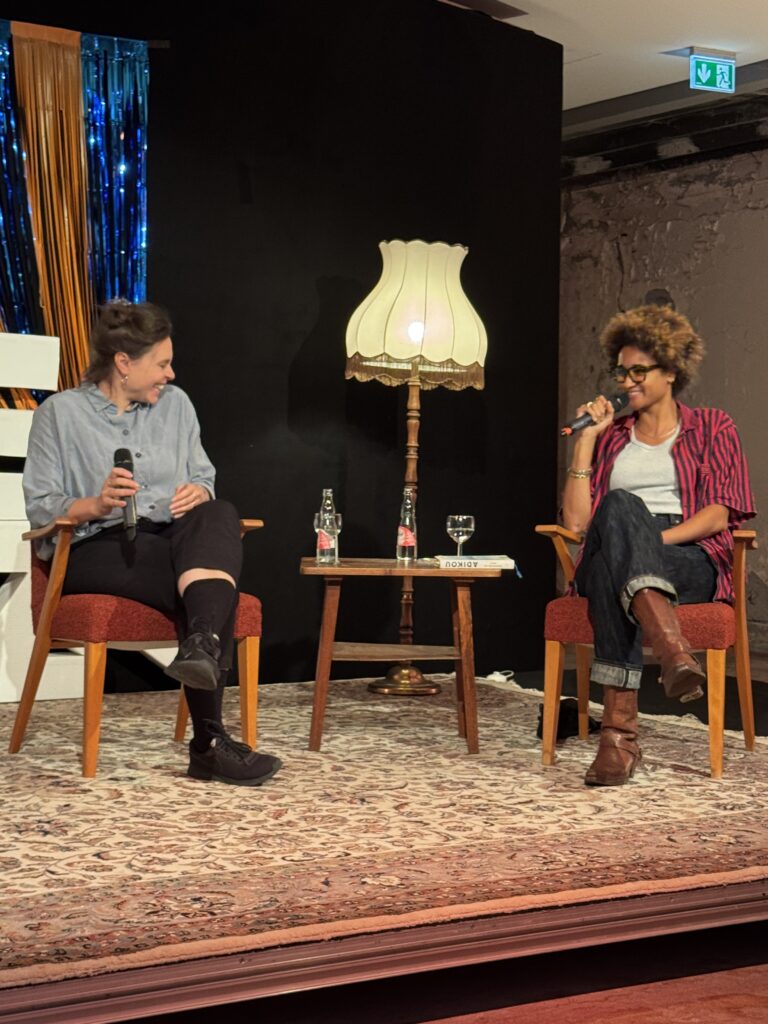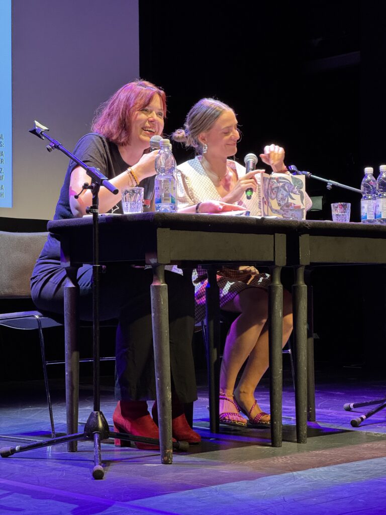 Der nächste Festivalbesuch begann spontan früher. Zwar stand ich für die Lesung von Julia Schoch erneut auf der Gästeliste, aber der Programmpunkt davor – „Schwarze Wut und weiße Schuld“, eine Lesung bzw. ein Gespräch mit Raphaëlle Red und Lene Albrecht – klang einfach zu interessant. Die Karte kaufte ich mir also spontan an der Abendkasse und los ging es.