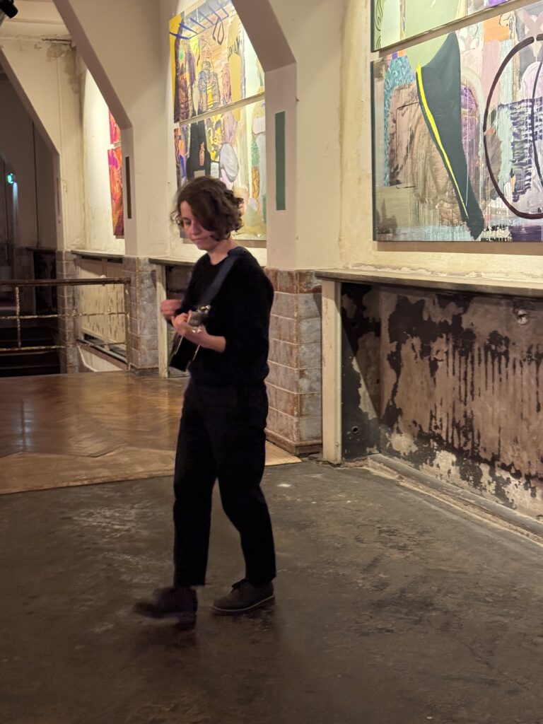 Die Besonderheit des Lyrikparcours ist auch, dass es – wie der Name vermuten lässt – eine „bewegte“ Lesung ist. Bedeutet: Als Publikum bewegt man sich zwischen den Lesungen durch das Zentralwerk, sieht Kunstwerke und die Geschichte dieses Ortes während live gespielte Musik das ganze untermalt. Die kam dieses Mal von Marieluise Herrmann, die mich mit Hackbrett und Ukulele begeisterte.