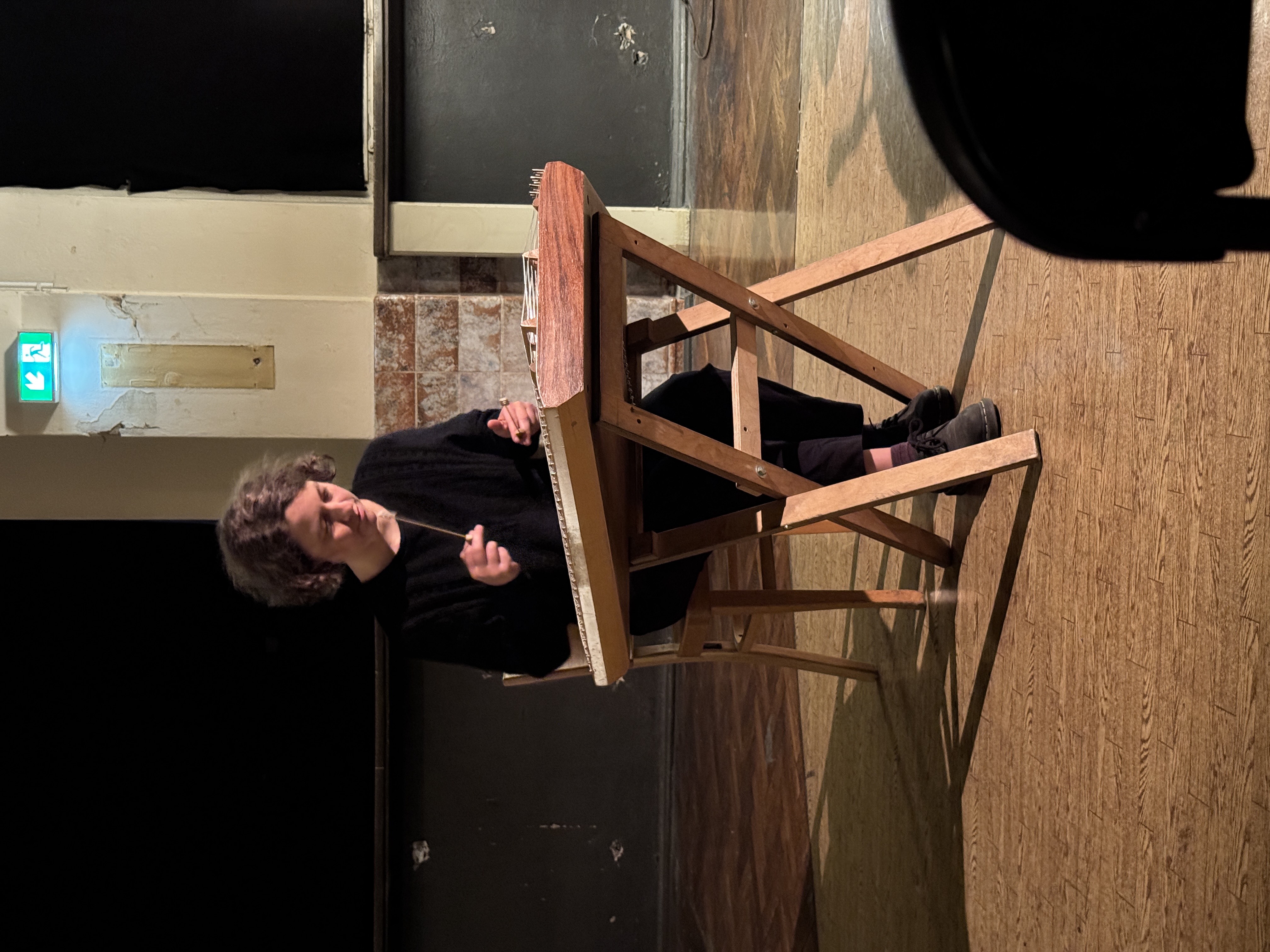 Dieser Programmteil begann mit einer kurzen Filmsequenz aus dem Film, den Julia Schoch anlässlich ihrer Arbeit als Mainzer Stadtschreiberin 2024 drehen ließ. Ihr Ansatz bei diesem Film war auch der thematische Ausgangspunkt der Lesung. Denn die Frage lautet oft: Wer spricht da, wenn es im Text „Ich“ heißt.
