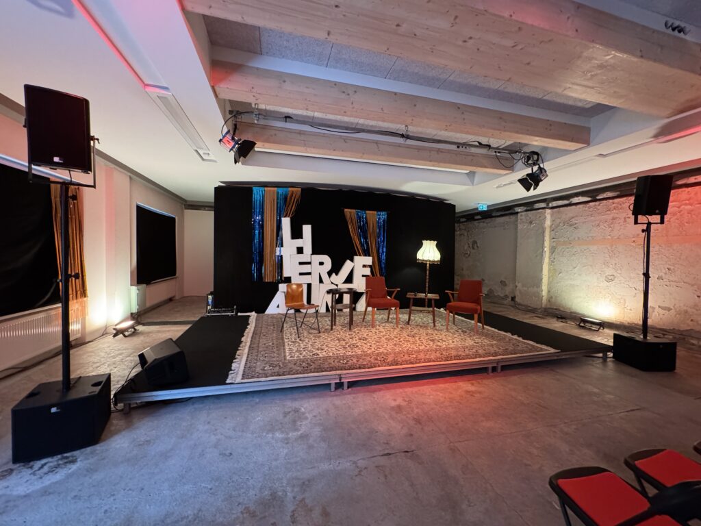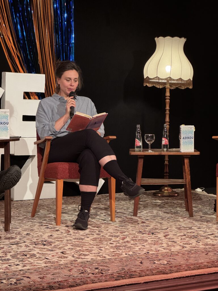 Zunächst war da ein leerenr Saal. Zugegeben: Es ist befremdlich, 15 Minuten vor Veranstaltungsbeginn als einzige im Publikum zu sitzen. Zum Glück kamen dann noch ein paar weitere Menschen dazu, ich hätte mir aber gerade für diesen Programmpunkt mehr Publikum gewünscht. Vielleicht lag das auch an der zeitlichen Überschneidung zu Julia Schoch. Deren Lesung ging um 18 Uhr los, die Gesprächsrunde mit Raphaëlle Red und Lene Albrecht um 17 Uhr. Eine bessere Taktung wäre hier super gewesen.