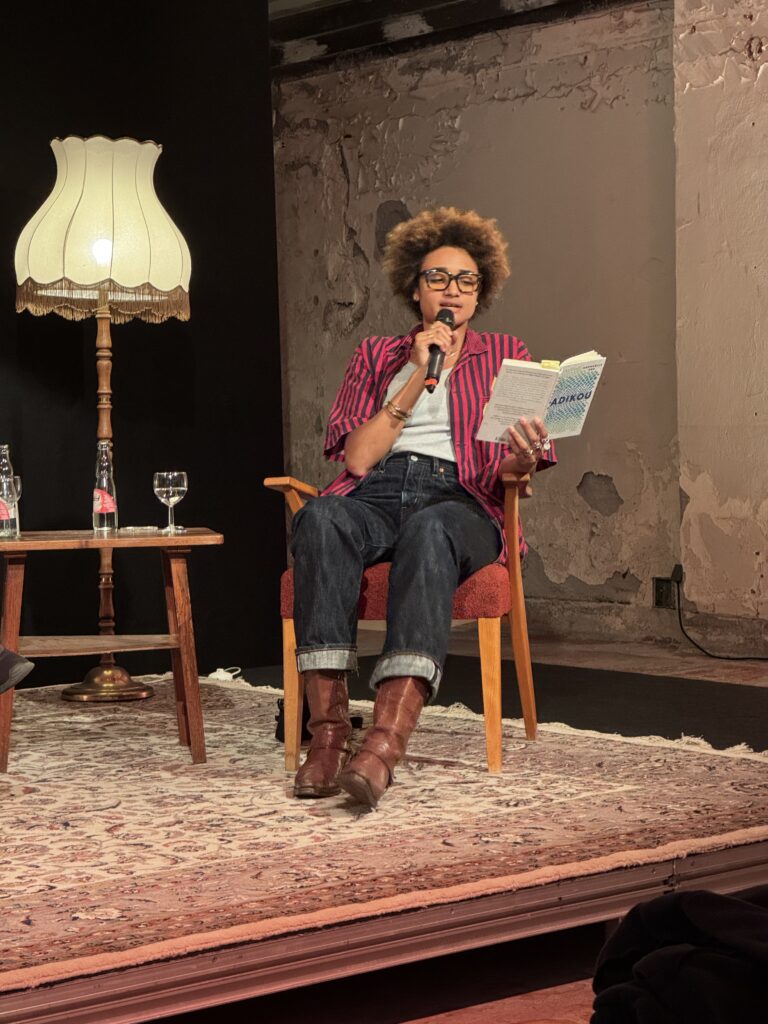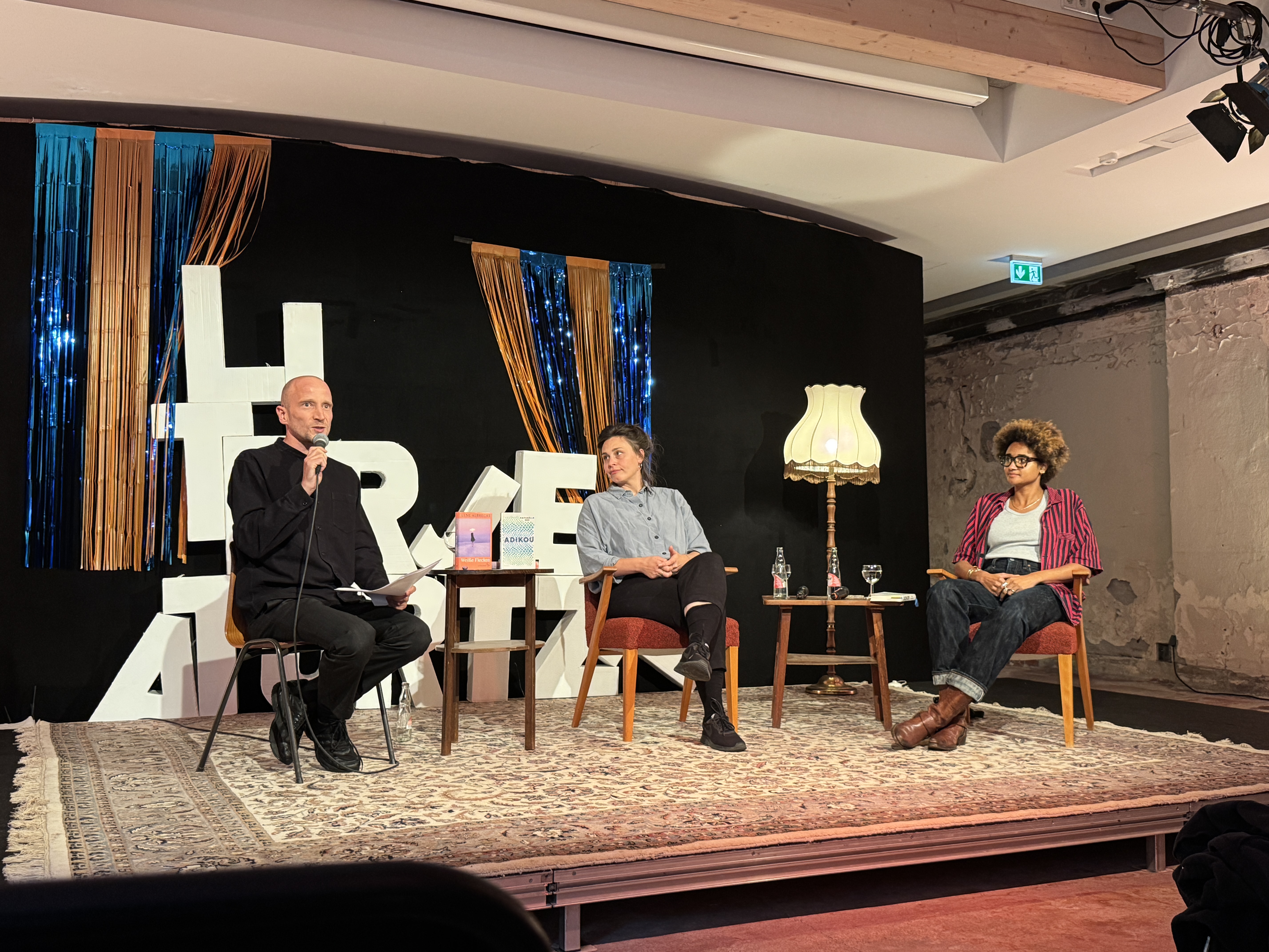 Ich war damit eine derjenigen die aus der hochinteressanten Diskussion rausging. Eine Diskussion, die nicht nur literarisch viel zu bieten hatte, sondern auch viel Wissen in Bezug auf Rassismus-Dimensionen vermittelte. Allein der Einstieg über einen kurzen Abriss deutscher Kolonialgeschichte war ein großartiger Kniff. So wussten alle im Publikum, auf Basis welchen Wissens diskutiert würde. Großartig! Ebenso die klugen und reflektierten Argumente und Gedanken der Autorinnen – man konnte sich ihren Worten nicht entziehen. So, ja exakt so müssen Lesungen!