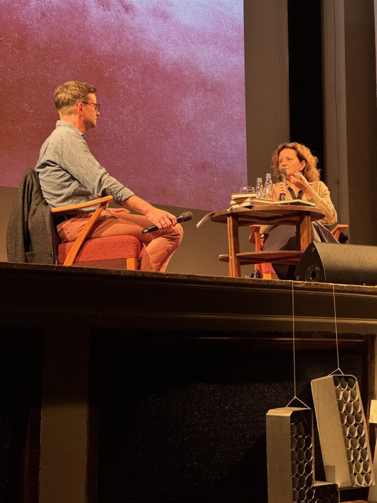 Für mich war es eine dieser Lesungen die absolut rund waren: Mal abgesehen von der großartigen Technik, die oft unterschätzt wird und hier in perfekten Sound im Saal mündete – ich mochte die Moderation, die durchdachten Fragen und die bedachten Antworten. Ja, Autorin und Moderatorin kannten sich, aber es bestand nie der Eindruck, als wäre die Situation schon zigfach durchgespielt.